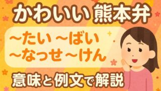 熊本・地域情報 熊本弁かわいい方言語尾|日常の挨拶・相づち・返しのフレーズ大全 「むぞらしか」や「すいとーよ」などのかわいい熊本弁と、〜たい・〜ばい・〜なっせ・〜けん等の語尾を意味と例文で解説。告白や挨拶、日常の受け答えでの使い分け、標準語との違い、地域差や敬語表現までやさしく学べます。 2025.09.13 熊本・地域情報