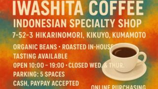 熊本・グルメ情報 岩下珈琲|熊本・光の森で出会うインドネシア無農薬豆・自家焙煎専門店の魅力深掘り 岩下珈琲は熊本県菊池郡菊陽町光の森7-52-3(メロディーA号&B号)のインドネシア豆専門店。無農薬生豆を自家焙煎、試飲あり。営業時間10:00–19:00、水木定休。TEL 096-284-1713。駐車場5台、現金・PayPay、オンライン購入可。 2025.09.11 熊本・グルメ情報