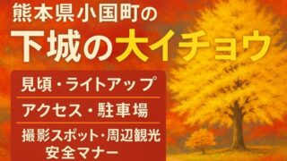 熊本・観光情報 下城の大イチョウの見頃とライトアップ情報|色づきの進み方と天候別の楽しみ方ガイド 熊本県小国町の「下城の大イチョウ」を、見頃・ライトアップ・アクセス・駐車場・撮影スポット・周辺観光・安全マナーまで整理。初めてでも迷わない現地目線の情報で秋の計画をサポート。 2025.09.06 熊本・観光情報